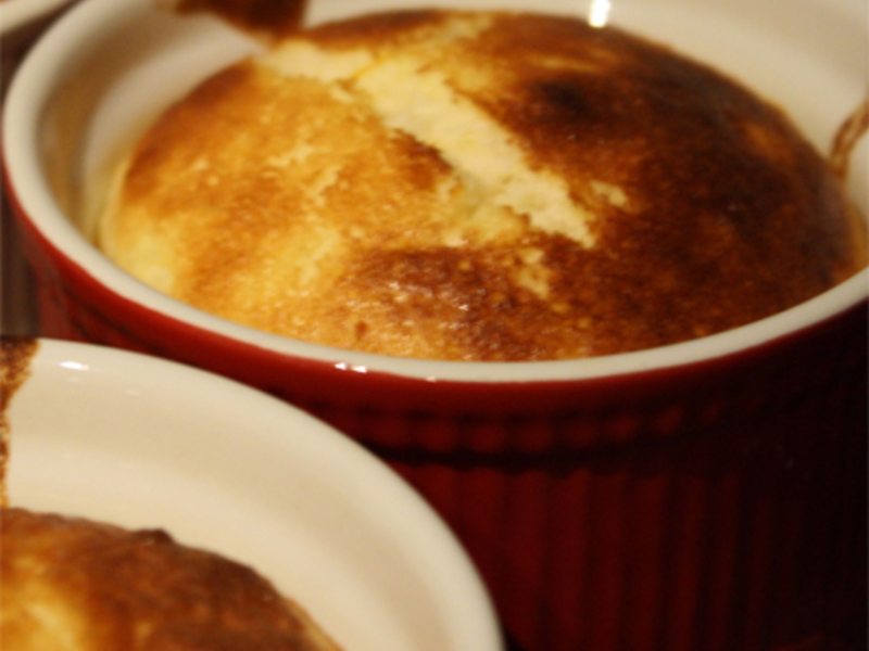 - Se toarna compozitia in forma tapetata si se coace in cuptor, in bain-marie, timp de 45 de minute. Se scoate din forma si se pudreaza cu zahar.